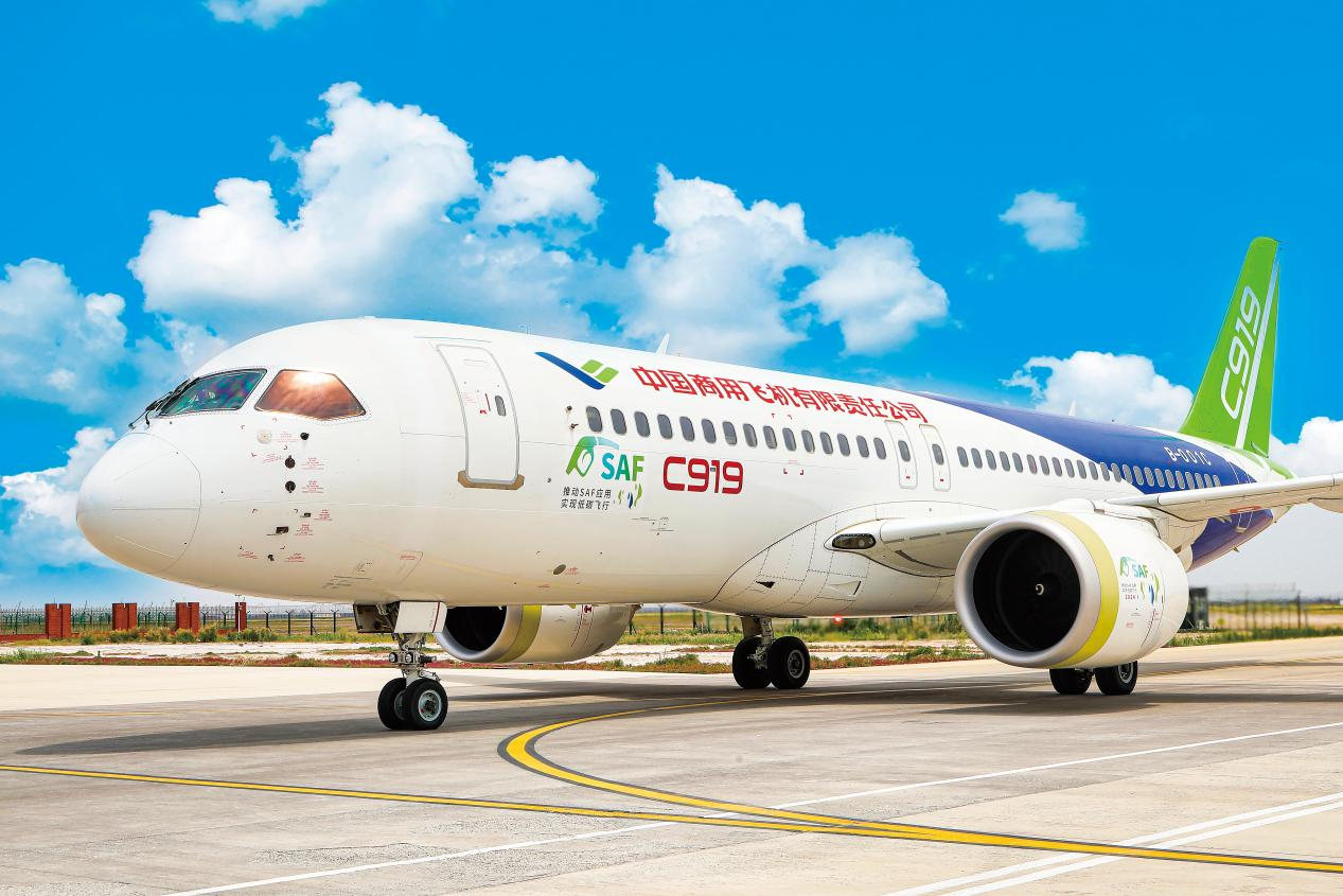 2024年6月5日,加注中国石化自主研发生物航煤的国产大飞机C919和我国自主研发的ARJ21飞机,分别在山东东营机场和上海浦东机场成功完成试飞。这是国产商用飞机首次加注生物航煤。此次试飞成功证明了我国自主研发的生物航煤拥有非常良好飞行性能,有力推动可持续航空燃料逐步发展和应用。图为加注了中国石化镇海炼化生物航煤的国产大飞机C919。(资料图片)